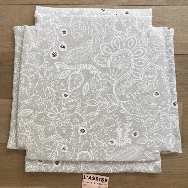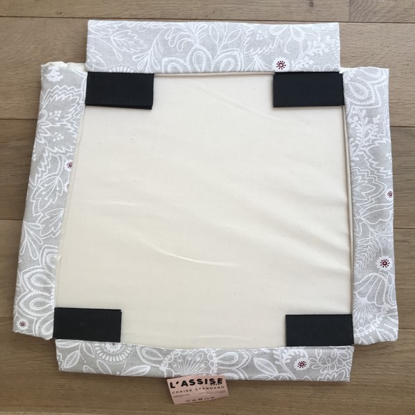 Nos assises sont confectionnées avec notre système d’attache breveté : des scratchs situés en dessous de la housse viennent se fixer à votre chaise existante et assurent un excellent maintien. Leur largeur de 10cm permet d’adapter la housse à la taille de votre assise.