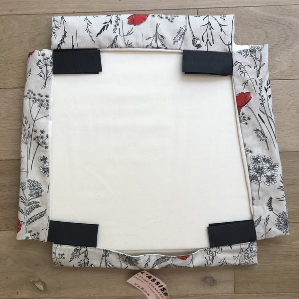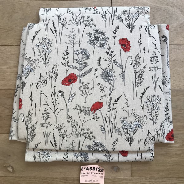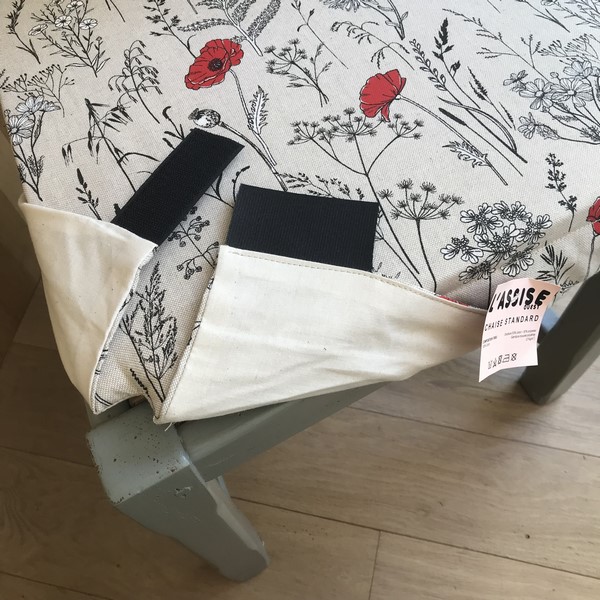 Notre système d’assise velcro breveté est unique et assure un excellent maintien sur la chaise. Les 4 rabats en tissu permettent de regarnir la chaise sur ses 4 côtés. La mousse intérieur en polyéther de 1er choix apporte du galbe, de la tenue et évidemment du confort à l’assise. Ses larges scratch d’environ 10 cm assurent un excellent maintien et permettent d’adapter l’assise à la chaise.